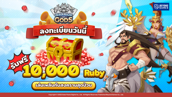 แจกอีก ! สำหรับเหล่านักรบหน้าใหม่ รับไปเลยทันที 10,000 รูบี้แบบฟรีๆ เพียงกดเข้าไปลงทะเบียนรับสิทธิ์ผ่านเว็บไซต์ Warrior of Gods