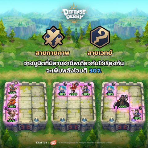 ในที่สุดก็จะได้ทดสอบ Defense Derby เกมส์มือถือใหม่แนว Tower Defense PVP จาก Krafton ที่จะเพิ่มลูกเล่นที่หลากหลายให้เราได้สนุกไปอีกขั้น พร้อมการออกแบบตัวละคร และ คุณภาพกราฟิกที่สวยงาม ตามสไตล์เกมส์แนวแฟนตาซี เตรียมที่จะเปิดให้ทดสอบช่วง Early Access Test ในวันที่ 27 เมษายน – 11 พฤษภาคม 2566 นี้ โดยตัวเกมส์จะเปิดให้ ดาวน์โหลดพร้อมกัน ในวันที่ 27 เมษายน แบบ จำกัดจำนวนผู้เข้าทดสอบ ใครอยากลองตั้งตารอกันให้ดี ข้อมูลในช่วงทดสอบทั้งหมดจะถูกรีเซ็ตหลังจากจบการทดสอบ