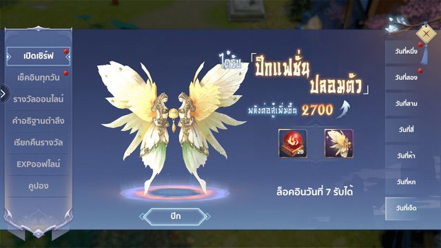 กิจกรรมล็อกอินครบ 7 วัน รับไปเลยปีกแฟชั่นทองคำขาวสุดน่ารัก