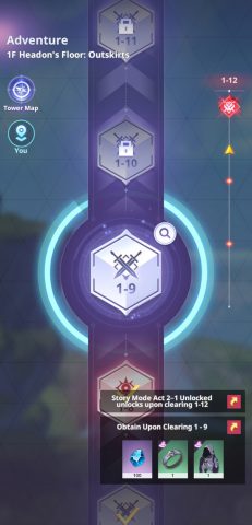 การตัดแยก ในส่วนของ เนื้อเรื่อง และ การฝ่าหอคอย ออกจากกัน บอกเลยว่าหลายครั้งที่เรากำลังมันส์มืออยู่กับการต่อสู้ แต่ก็ต้องมานั่งกดข้ามเนื้อเรื่องเพื่อจะเข้าฉากต่อสู้ต่อเสียที ซ้ำร้ายบางทีเนื้อเรื่องก็กำลังสนุก อยากสู้ก็อยากสู้ ปัญหานี้จะหมดไปเพราะใน Tower of God: New World ได้มีการแยกทั้ง 2 ส่วนออกจากกัน สำหรับด่านเนื้อเรื่องนั้น จะปลดล็อคเมื่อเราฝ่าด่านผจญภัยได้ถึงด่านที่กำหนด แต่ด่านผจญภัยถ้าเราสู้ไหวก็สู้ยาวไปได้เลยไม่มีข้อจำกัด