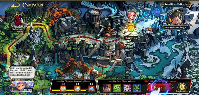 เบื้องต้นเราจะต้องทำการฝ่า ด่านเนื้อเรื่อง ที่มีมากกว่า 100 แผนที่ เมื่อผ่านแต่ละบทไปได้จะปลดล็อคทั้ง ตัวละคร และ ระบบใหม่มาเรื่อยๆ มีระบบให้เราได้เล่นหลากหลายทั้ง ดันเจี้ยนฟาร์มทรัพยากร, ไต่หอคอย, อารีน่า และ ระบบการรวบรวมทรัพยากรโดยอัตโนมัติด้วย ระบบ Idle
