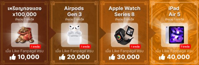 ทุกคนที่ลงทะเบียนล่วงหน้าจะได้รับสิทธิ์เข้าร่วมแคมเปญ “เล่นสามก๊ก ลุ้นล้าน” แจกรางวัลแบบจุใจทั้งทองคำมูลค่า 100,000 บาท, Air Pods 3, Apple Watch Series 8, iPad Air 5 และรางวัลอื่น ๆ อีกมากมายร่วมล้านบาท ติดตามรายละเอียดแคมเปญเพิ่มเติมได้ที่ https://samkoktactics.playpark.com