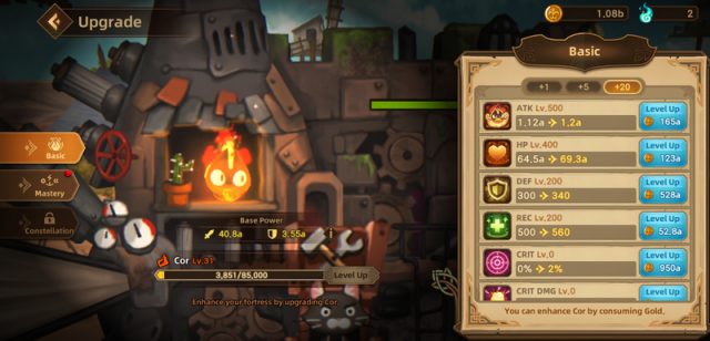 Fortress Saga เกมส์มือถือใหม่ Idle RPG ให้เราได้พัฒนาป้อมปราการเดินได้ขนาดยักษ์ ซึ่งเราสามารถ อัพเกรดเลเวล ให้ป้อมปราการของเราซึ่งจะเพิ่มค่าสถานะต่างๆ ตามเลเวลที่เพิ่มขึ้นนอกจากนั้นยัง สามารถอัพค่าสถานะ เฉพาะด้านที่เราต้องการไม่ว่าจะเป็น ค่าโจมตี, HP, DF และ อีกหลายค่า อยากได้ป้อมที่เด่นด้านไหนก็เลือกได้ตามใจ นอกจากนั้นเรายังอัพเกรด Mastery ที่จะช่วยเพิ่มความแข็งแกร่งในด้านต่างๆ เพื่อให้ป้อมของเราแข็งแกร่งมากยิ่งขึ้นอีกทาง