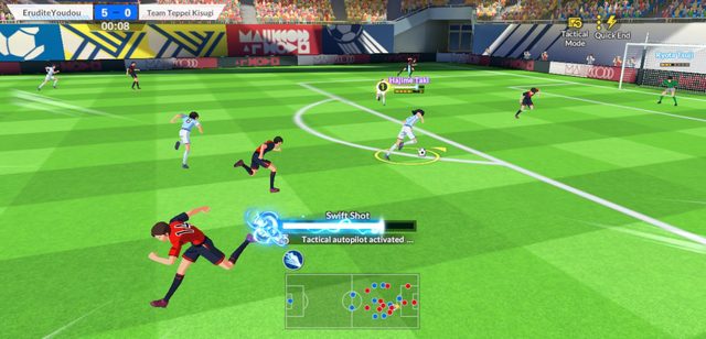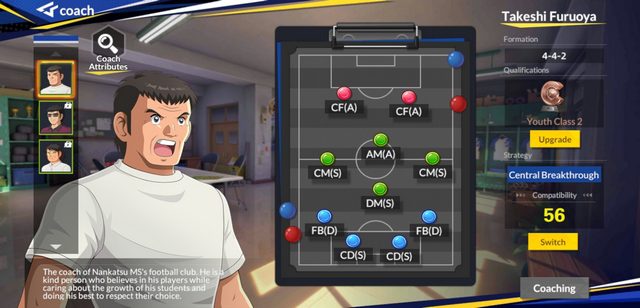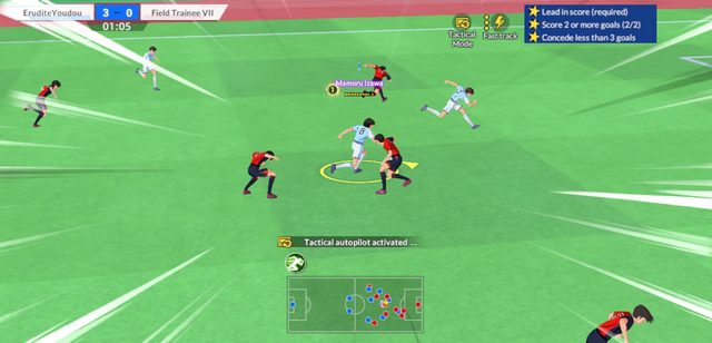 การจัดทีม และ การบังคับ การจัดทีมนั้นเราจะต้องเลือกโค้ช เลือกแผนที่จะเล่น ซึ่งเริ่มต้นจะเซ็ตไว้ที่ 4-4-2 แบบบุกกลาง เอาไว้ซึ่งเราสามารถเข้าหน้าจัดทีมเพื่อไปเลือกให้เป็นบุกข้างก็ได้ นอกจากนั้นยังมีแผนจัดทีมแบบอื่นที่เราสามารถได้ตามตัวละครที่เรามี การเลือกตัวลงสนามนั้นไม่มีข้อบังคับใดๆ แค่จะมีผลตอนเล่นเพราะท่าต่างๆ นั้นจะมีขอบเขตที่สามารถใช้ได้หากอยู่นอกขอบเขตตัวละครนั้นก็ไม่สามารถใช้ท่าได้ ในส่วนของ การบังคับตัวละคร เราสามารถเลือกที่จะ บังคับแบบเต็มรูปแบบ ทั้งการเคลื่อนไหว เลือกส่งใกล้ ไกล สำหรับคนที่บังคับเก่งๆ แนะนำว่าบังคับเองจะเก่งมากทำอะไรได้หลากหลายกว่า แต่ใครบังคับมือไม่ถนัดก็สามารถ เปิดโหมด Auto ได้ หากเราพึ่งโหมดนี้เป็นหลักจะต้องเลือกวางตัวละครให้อยู่ในพื้นที่ที่เหมาะกับเขาที่สุดด้วย