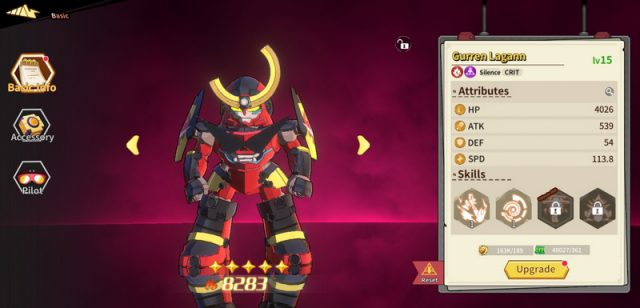 Tengen Toppa Gurren Lagann เกมส์มือถือใหม่ Turn-Based สะสมตัวละครให้เราสามารถรวบรวมเหล่า กันเม็ง เพื่อสร้างทีมออกตะลุยเนื้อเรื่อง การอัพเกรด กันเม็ง นั้นเราจะสามารถเพิ่มเลเวลหุ่น เมื่อเลเวลเต็มแต่ละช่วง จะสามารถทะลวงระดับ เมื่อข้ามขั้นแล้วจะได้รับ Skill ใหม่ สามารถ อัพดาว ให้เหล่า กันเม็ง ด้วยการใช้ตัวละครเดียวกันเป็นวัตถุดิบ นอกจากนั้นเรายังใส่ อุปกรณ์เสริม เพื่อเพิ่มความสามารถให้ กันเม็ง ได้อีกทางด้วย