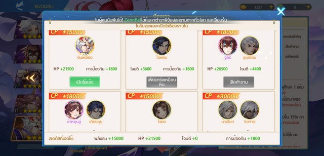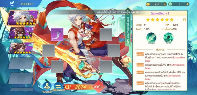ตัวละครจะสามารถเสริมแกร่งได้ผ่าน การเพิ่มเลเวล, สวมใส่อุปกรณ์, เพิ่มดาว, เพิ่มระดับ นอกจากนั้นยังสามารถเสริมพลังให้ขุนพลของเราด้วยการสะสมตัวละครที่มีความสัมพันธ์กับตัวละครที่เราใช้ สร้างทีมสุดแกร่ง 6 ตัวละคร เพื่อลุยด่านเนื้อเรื่อง เพื่อปลดล็อคระบบอื่นๆ อย่าง ชนะใจเบ้งเฮ็ก, การแสดงยุทธ์, โหมดการค้าขาย, พันธมิตรปราบ BOSS และ ระบบสนุกๆ อีกมากมายให้ได้ลอง