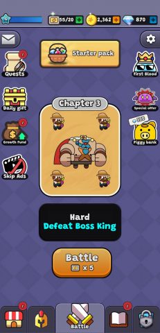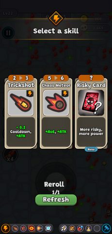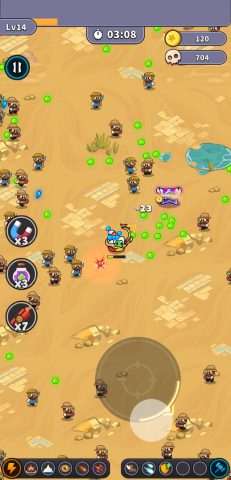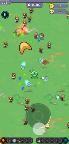 หลังเตรียมพร้อมก็ถึงเวลาที่เราจะต้องลงสนามต่อสู้ เมื่อเราสามารถจัดการมนุษย์ได้เราจะได้รับทรัพยากรอย่าง ค่าประสบการณ์ และ เหรียญทอง ที่เราจะต้องเก็บเพื่อให้สามารถอัพเลเวลให้กับสไลม์ของเรา โดยเมื่อเรา เลเวลอัพ เราจะสามารถเลือกการอัพเกรดโดยจะมีทั้ง Skill ที่เราเซ็ตไว้ตั้งแต่ต้น นอกจากนั้นจะมีการ์ด Skill เสริมเพิ่มความสามารถอีกหลายแบบ ไม่เพียงเท่านั้นเรายังหยิบ ไอเทมเสริม ติดมืออย่าง ระเบิดทั่วแผนที่, ยาเติมเลือด และ แม่เหล็กดูดทรัพยากรทั้งแผนที่