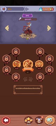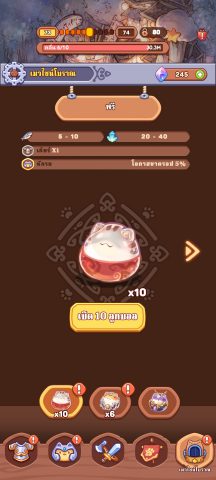 ตั๋วสุ่มกาชาปองเกมนี้หาไม่ง่าย แต่ก็ไม่ยากเกินไป ตีมอนสเตอร์ในด่านซักพักก็จะได้มาก ซึ่งแนะนำให้กดทีละ 10 ใบไปเลย จะมีโอกาศได้เจ้าเหมียวฮีโร่เยอะ พร้อมอุปกรณ์ต่างๆติดมาด้วย