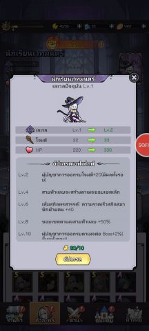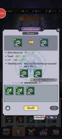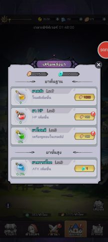 อัพเกรดยา : ในฟังก์ชั่นดินแดนสามารถอัพเกรดยาต่างๆเพื่อเพิ่มพลังโจมตี HP โชค และ AFK ได้