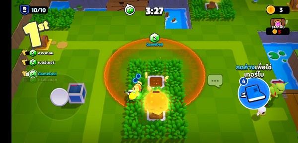 ระบบการต่อสู้ การต่อสู้นั้นเรียบง่ายด้วยปุ่มเคลื่อนที่ พอหยุดเคลื่อนที่ตัวละครจะโจมตีศัตรูในขอบเขต เมื่อกดเข้าเล่นจะเริ่มด้วยการสุ่ม แผนที่ และ บัพพิเศษ เมื่อเข้าสนามเราจะสามารถเลือกตัวละครที่ถูกสุ่มออกมาเป็นตัวละครเริ่มต้นในการต่อสู้ เราจะต้องรีบ ฟาร์มเหรียญทอง ด้วยการ จัดการมอนส์เตอร์, ตัดต้นไม้ หรือ เก็บเหรียญทองที่ตกอยู่ในบริเวณใกล้ๆ เมื่อได้ตามจำนวนที่หีบต้องการให้เราเดินเข้าไปใกล้หีบเราจะสามารถใช้เหรียญทองเพื่อสุ่มรับตัวะครมาเพิ่มในทีม เป้าหมายเพื่อการรวบรวม คลิสตัล ให้ได้มากที่สุด หรือ กำจัดผู้เล่นคนอื่นให้หมด ก็จะเป็นผู้ชนะไป