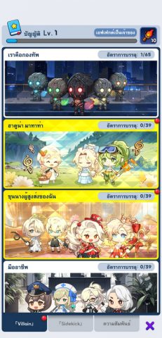 เราสามารถสร้างทีมจากการรวบรวมเหล่า Super Villain ซึ่งเป็นตัวละครเหล่าวายร้ายสุดแกร่งที่มีให้เราสะสมมากมาย รวมไปถึงเหล่า SideKick สัตว์คู่หูสุดน่ารักของเหล่าตัวละครที่จะช่วยเสริมพลังให้เหล่าวายร้ายในทีมได้อีกขึ้น การพัฒนาเลเวลของ Super Villain นั้นจะทำได้เมื่อสะสมตัวละครนั้นได้ตามจำนวนที่กำหนด เมื่อ สุ่มหาตัวละคร เพิ่มขึ้นถึงจำนวนที่กำหนดตู้สุ่มจะเพิ่มเลเวลขึ้น โอกาสที่จะได้ตัวละครเลเวลสูงขึ้นก็จะเพิ่มขึ้นตาม