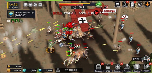 แม้จะเป็นการต่อสู้แนว Auto Battle ที่เราสามารถปล่อยให้ทีมที่จัดขึ้นฝ่าด่านไปเรื่อยๆ ได้ แต่ตัวเกมส์จะมีระบบพิเศษที่เพิ่มของรางวัลให้คนที่นั่งจ้องหน้าจอ ในทัพศัตรูจะมี สัตว์ หรือ ซอมบี้ถือหีบ ที่หากเรากดแตะพวกมันจะ ได้ของรางวัลเพิ่มเติม มาพร้อมโหมดดันเจี้ยนพิเศษทั้ง ดันเจี้ยนซอมบี้ และ ดันเจี้ยนสุ่ม ให้เราได้ท้าทายในรูปแบบต่างๆ แถมสามารถรับทรัพยากรที่จำเป็นในการเพิ่มความสามารถให้ทัพของเรา