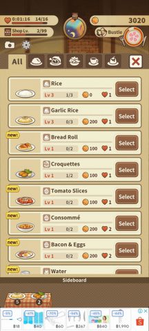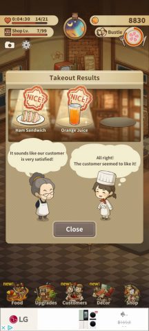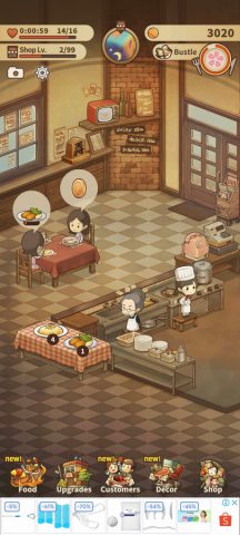 เมื่อลูกค้าทานเสร็จเราจะต้อง คิดเงิน แล้วเก็บโต๊ะ เอาจานไปให้คุณยายช่วยล้าง ไม่ว่าลูกค้าจะสั่งกี่เมนูจะนับเป็น 1 จาน เราสามารถเก็บมาก่อน ได้มากสุด 8 จาน แล้วค่อยให้คุณยายล้างก็ได้ หรือ จะเก็บมาจานเดียวแล้วล้างเลยก็ได้ เท่านั้น โดยการทำ อาหารแต่ละครั้ง และ การล้างจาน ไม่ว่าจะเก็บมาแล้วกี่จาน เราจะต้องเสียค่าพลังงาน ตามที่กำหนด ปลดล็อคเมนูอาหารใหม่ๆ โดยการฝึกทำอาหารชนิดที่กำหนดให้ได้ตามต้องการ สนุกไปกับ เรื่องราวของสาวน้อยตั้งแต่วัยเด็ก เรื่องราวของลูกค้าที่แวะเวียนมาหาเรา นอกจากนั้นยังสนุกไปกับ การตกแต่งร้านให้สวยงาม