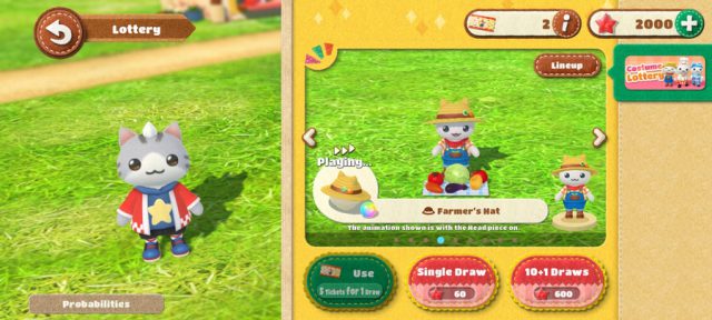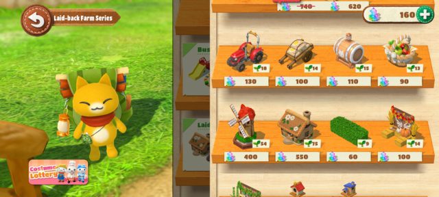 นอกจากความสนุกจากการทำฟาร์มในบรรยากาศสุดชิล เรายังได้สนุกไปกับการจับเหล่า น้องเเมวผู้ช่วยภายในฟาร์มมาแต่งตัวด้วยชุดคอสตูม ที่มีหลากหลาย โดยโมเดลแมวผู้ช่วยเริ่มต้นนั้นอาจจะดูธรรมดาๆ แต่ในส่วนคอสตูมจะมีชุดคอสตูมแต่งเป็นแมวที่ดูน่ารักขึ้น หรือ จะแต่งให้กลายเป็นแมวชาวสวนเพื่อให้เข้ากับบรรยากาศก็ได้ ส่วน ของตกแต่งฟาร์ม ก็จัดเต็มแค่ช่วงทดสอบรอบ CBT ก็มีให้เราเลือกหลายธีม โดยแต่ละธีมก็มีหลายชิ้นมากๆ ให้เราเลือกมาตกแต่งฟาร์มของเราได้เป็นในแบบที่ต้องการ