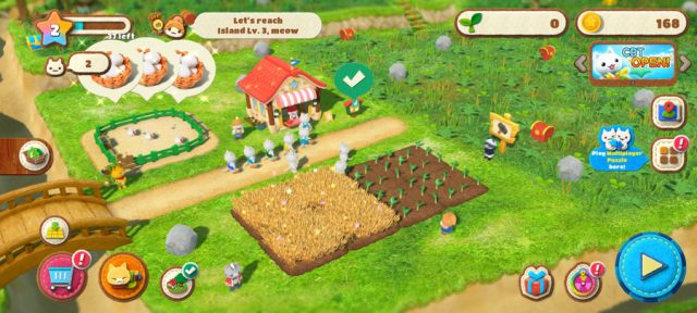 Meow Star Acres 2 เกมส์มือถือใหม่ Farming Simulation เกมส์แนวทำฟาร์มที่มีการใช้กราฟิกสวยงามสบายตา ที่ให้ความรู้สึกผ่อนคลายสุดๆ เราเริ่มต้นเช่นเดียวกับเกมส์ทำฟาร์มทั่วไป ปลูกพืช ทำอาหารเลี้ยงสัตว์ นำผลผลิตที่ได้ไปแปรรูป ขายให้กับลูกค้าที่แมวหลากหลาย โดยของตอบแทนอาจไม่ได้มีแค่เหรียญทองเท่านั้น แต่บางครั้งลูกค้าของเราจะแถม ไอเทมพิเศษ อย่างอื่นมาด้วย ยิ่งสามารถสร้างผลิตภัณฑ์ขั้นสูง ผลตอบแทนที่ได้จะยิ่งสูงตามไปด้วย