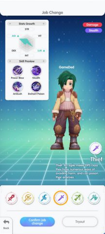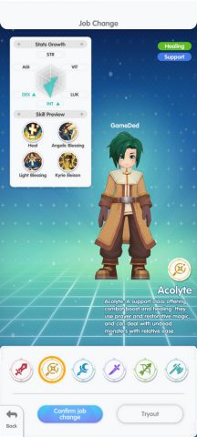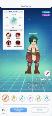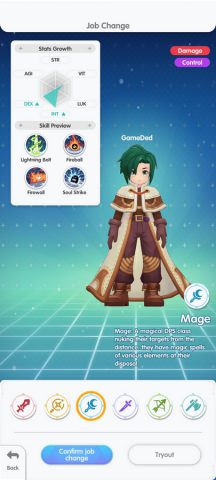 Ragnarok : Back to Glory เกมส์มือถือใหม่แนว MMORPG จากไอพีเกมส์ออนไลน์สุดคลาสสิคที่ยังคงมีอาชีพดั้งเดิมให้เราเล่น 6 คลาส ได้แก่ Swordsman, Mage, Archer, Acolyte, Merchant และ Thief โดยเรายังสามารถเลือกอัพเกรดค่าสถานะได้แบบเดิม แต่รายละเอียดของ Skill จะถูกดัดแปลงไปบ้าง ระบบแพ้ธาตุ ยังคงมีผลดังเดิม แต่จะไม่มีระดับธาตุแล้ว สามารถสลับมุมมองทั้ง แนวตั้ง และ แนวนอน ได้ตลอดเวลา ตามที่ต้องการ