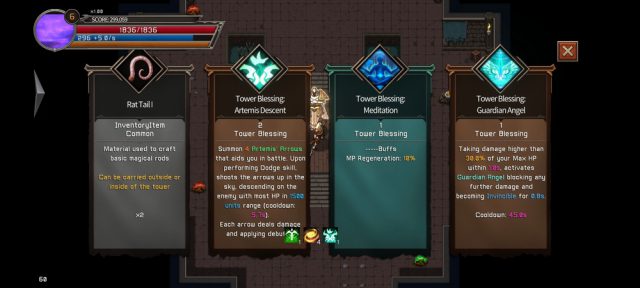นอกจาก บัพหอคอย ที่เราจะได้รับแล้ว บางครั้งจะมีการสุ่ม วัตถุดิบในการสร้างไอเทม ออกมาให้เราด้วย หากตัวละครของเราค่อนข้างจะผ่านได้สบายๆ ก็อาจจะเลือกเป็นวัตถุดิบแทนได้ หรือบางครั้งวัตถุดิบระดับสูงออกมาก็อาจต้องยอมที่จะไม่เก่งขึ้น ขึ้นอยู่กับสถานการณ์ในขณะนั้นว่าเราจะต้องตัดสินใจอย่างไร