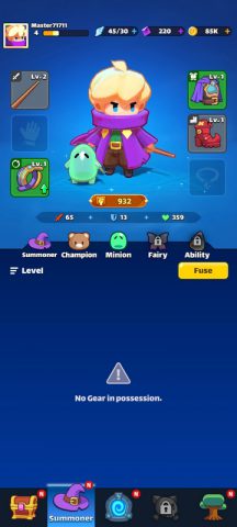 สามารถควบคุมด้วยมือเดียว ทำให้เล่นง่ายและเข้าถึงได้ทุกเพศทุกวัย เกมมีระบบการเติบโตแบบ Idle ผ่านการ “ตั้งแคมป์” ที่ช่วยให้ได้รับรางวัลแม้ขณะออฟไลน์ ผู้เล่นสามารถพัฒนา ต้นไม้โลก หรือทำเควสต์ประจำวันเพื่อเพิ่มเลเวลของซัมมอนเนอร์ได้