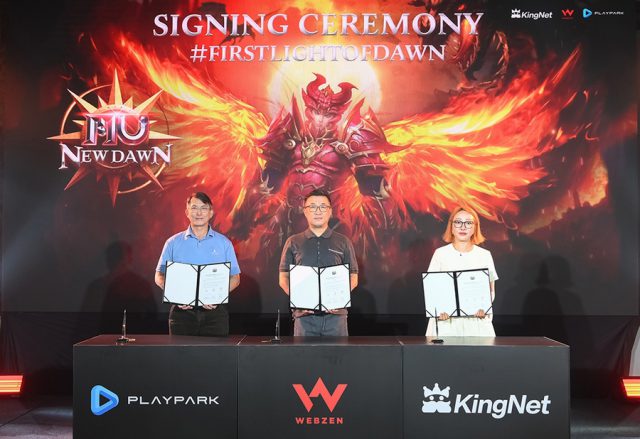 โดยพิธีลงนามจัดขึ้น ณ โรงแรมโซฟิเทล กรุงเทพฯ สุขุมวิท ภายใต้ธีมงาน FirstLightofDawn โดยมีผู้บริหารระดับสูงจากทั้งสามองค์กรร่วมงาน ได้แก่ คุณ Quach Dong Quang, Chief Executive Officer จาก PlayPark, คุณ Richard Yangki Song, Executive Vice President จาก WEBZEN และ คุณ Zhu Xiaoxu, Chief Business Officer จาก Kingnet เพื่อเฉลิมฉลองการกลับมาของตำนาน MU ในรูปแบบมือถือและพีซี