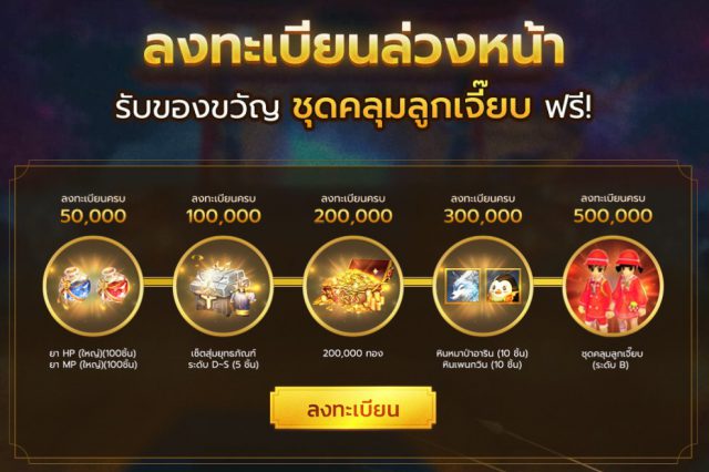 อย่าลืมร่วมกิจกรรมลงทะเบียนล่วงหน้ารับไอเทมท่องยุทธภพ