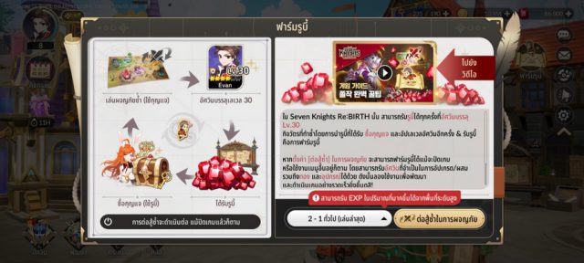 ระบบฟาร์มรูบี้ที่สะดวกสบายกว่าเก่า ใครเป็นแฟน Seven Knights คงจำกันได้ถึงความเหนื่อยของการเก็บเลเวลตัวละครให้ถึงเลเวล 30 เพื่อรับรูบี้ฟรี ปัญหาเหล่านั้นได้ถูกกำจัดไปแล้ว เพราะในภาคนี้ได้เพิ่ม ระบบฟาร์มรูบี้ แสนสะดวก ที่คุณสามารถ เซ็ตได้ทั้งการเปลี่ยนตัวละคร ว่าจะเอาตัวละคร ที่ ดาวมาก หรือ ดาวน้อย มาแทนเมื่อตัวละครในทีมเลเวลเต็ม แถมจะให้ขายอุปกรณ์ที่ได้มาเลย ก็สามารถทำได้ด้วยเช่นกัน เมื่อเราใช้โหมดนี้จะ สามารถออกไปเล่นในโหมดอื่นๆ ที่ไม่ใช่โหมดเนื้อเรื่องได้ หรือจะ ออกจากเกมส์เลยก็ได้ ยิ่งมีกุญแจมากยิ่งปล่อยกันได้แบบยาวๆ