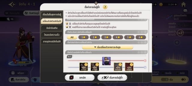 การจัดทีมอัศวิน เราสามารถเลือกอัศวิน 5 คน มาเข้าร่วมทีมได้อย่างอิสระ ไม่เพียงเท่านั้นเรายังสามารถเลือก รูปแบบ ที่แต่ละรูปแบบจะมีการ เพิ่มค่าสถานะ ให้ตัวละครแตกต่างกันไป นอกจากนั้นก่อนเข้าต่อสู้เราสามารถ จองการใช้สกิล ได้สูงสุด 3 สกิล มี ระบบต่อสู้ Auto ที่จะผ่านไปด่านถัดไป ช่วยให้การผ่านด่านเนื้อเรื่องทำได้ง่ายขึ้น โดยระบบนี้ยังมีให้ใช้ทั้งใน Arena, หอคอยไม่สิ้นสุด อีกด้วย
