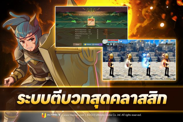 ยกระดับอุปกรณ์ด้วย ระบบตีบวกสุดคลาสสิก เพิ่มค่าสเตตัสมากมาย พร้อมกับแสงเอฟเฟ็กตามระดับสุดอลังการ ยิ่งตีบวกระดับสูงเท่าไร นอกจาก ความสามารถที่เพิ่มขึ้นมหาศาลแล้ว ความอลังการของ แสงสีก็จะมากขึ้นตามไปด้วย ถูกใจเกมเมอร์สายคลาสสิกอย่างแน่นอน