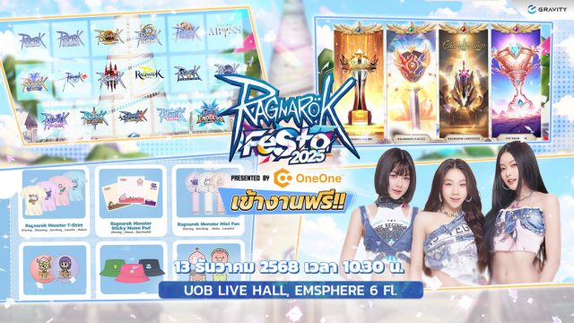 มหกรรมงานเกม และ eSport ระดับนานาชาติ Ragnarok Festa 2025 Presented by OneOne พร้อมกับการแสดงสดจาก PiXXiE วันที่ 13 ธ.ค. 2025 เวลา 10.30 น. เป็นต้นไป “เข้างานฟรี