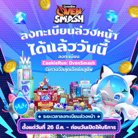 ใกล้ถึงเวลาของเหล่าสาวกคุกกี้ได้ไปลุยในสนามรบใหม่กันในอีกไม่ช้ากับ Cookie Run: OvenSmash ในโซน SEA อย่าพลาดรีบตามไปลงทะเบียนล่วงหน้ารอเพื่อจะได้ไม่พลาดเมื่อเกมส์พร้อมเปิดให้บริการได้แล้วทั้ง iOS และ Android
