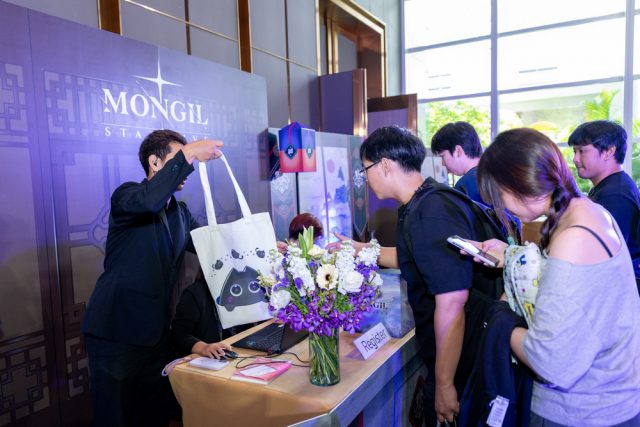ผู้เข้าร่วมงานลงทะเบียนพร้อมรับของที่ระลึกจาก MONGIL: STAR DIVE
