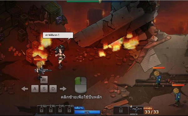 – คลิกขวาของเม้าส์ เป็นการยิง และขยับเม้าส์เพื่อหันทิศทางในการยิง