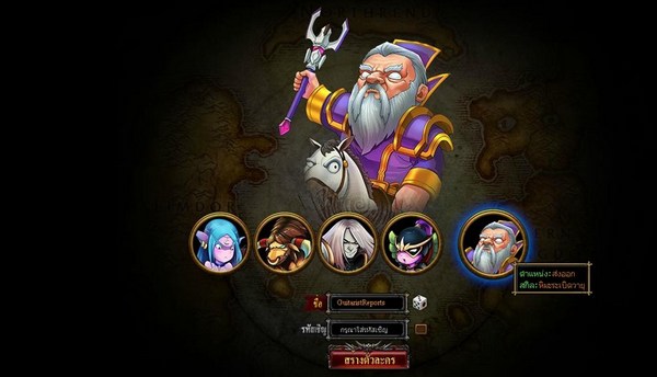 เมื่อเริ่มเกม เราสามารถเลือกฮีโร่ได้ 5 ตัว แต่ละตัวก็มีความสามารถและ Skill ต่างกัน เช่น บางตัวเป็นนักรบแนวหน้า บางตัวเป็นจอมเวทแนวหลัง เป็นต้น