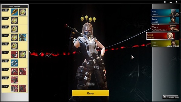 ตัวละครเราจะมีสกิลให้ใช้งาน โดยจะมีเกจที่ด้านซ้ายล่าง เต็มสามเกจ เมื่อเริ่มเล่นแต่ละตัวจะมีสกิล ติดตัว 2 สกิล ปุ่ม E และ Q โดยท่าที่ได้จะแตกต่างกันออกไปแต่ตัวละคร แต่ปุ่ม Q นั้นจะใช้ได้เมื่อมีเกจเต็มสามเกจ ซึ่งท่าและระยะของแต่ละตัวก็จะแตกต่างกันออกไปเช่นเดียวกัน แต่ส่งผลให้ถึงตายได้ทันทีหากโดนคู่ต่อสู้ แถมบางตัวละคร เป็นแบบติดตามตัวอีกด้วย
