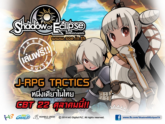 ได้เวลาปลุกกระแสความสนุกสไตล์อนิเมะญี่ปุ่นกันแล้ว เมื่อบริษัท อินิทรี ดิจิตอล จำกัด (มหาชน) เตรียมส่งเกมส์น้องใหม่ล่าสุด Shadow of Eclipse (SOE) เกม Web Browser Base แนว J-RPG Tactics หนึ่งเดียวในประเทศไทย จากผู้พัฒนา Nimble Crew Games ประเทศเกาหลีใต้ โดยเกม SOE จะชวนเพื่อนๆ คอเกมแนววางแผน ปฏิบัติภารกิจรบรูปแบบใหม่ ภายใต้เรื่องราวเกมที่เข้มข้น ครบทุกรสชาติ เปิดแผนที่ความสนุกพร้อมกันในช่วง Closed Beta 22 ตุลาคมนี้ ที่สำคัญ ไม่รีเซ็ตด้วย!!!