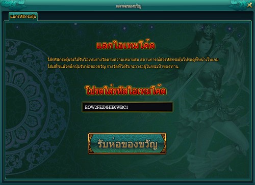 2. จากนั้นให้ทำการกรอก Item Code ในช่องว่างดังภาพ กรอกเสร็จแล้วคลิ๊กที่ปุ่ม “รับห่อของขวัญ”
