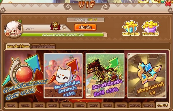 Rainbow Saga มี VIP ทั้ง 12 ระดับ ในแต่ละดับจะกำหนดค่าเติบโตไว้ เมื่อค่าเติบโตถึงตามที่ระดับกำหนดก็สามารถเป็น VIP และได้รับสิทธิประโยชน์ VIP ระดับนั้นๆ แบบอัตโนมัติเลย