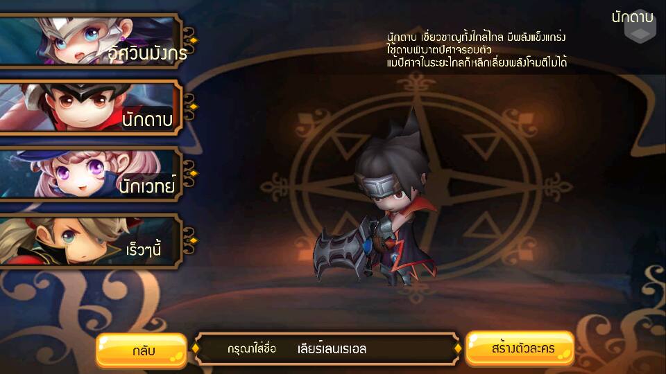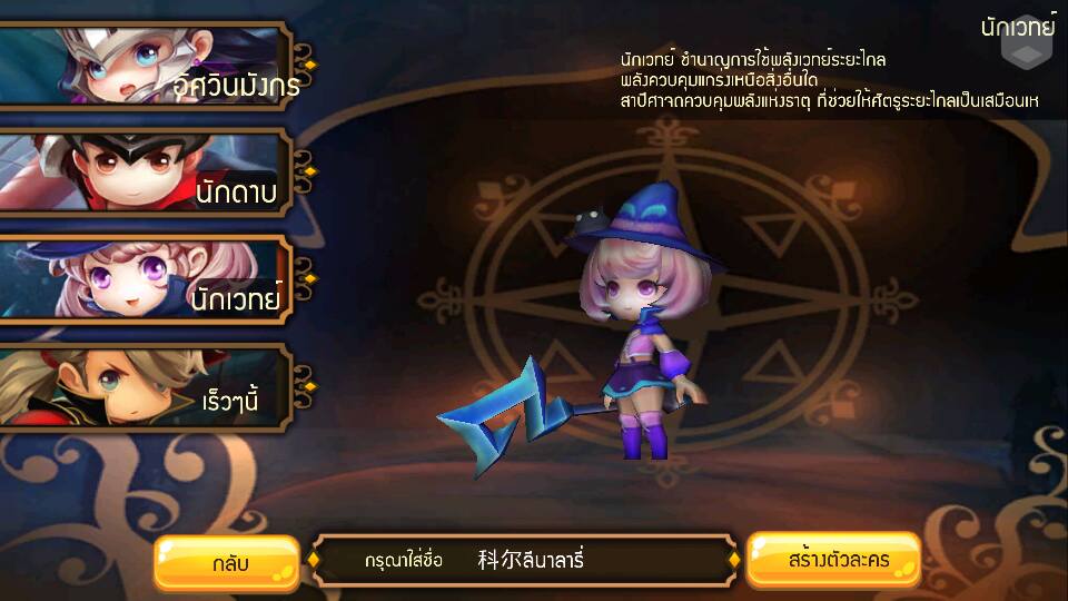 นักเวทย์ – โจมตีไกล อาวุธเป็นคฑา พลังเวทย์สูงสุด แต่พลังป้องกันต่ำมาก