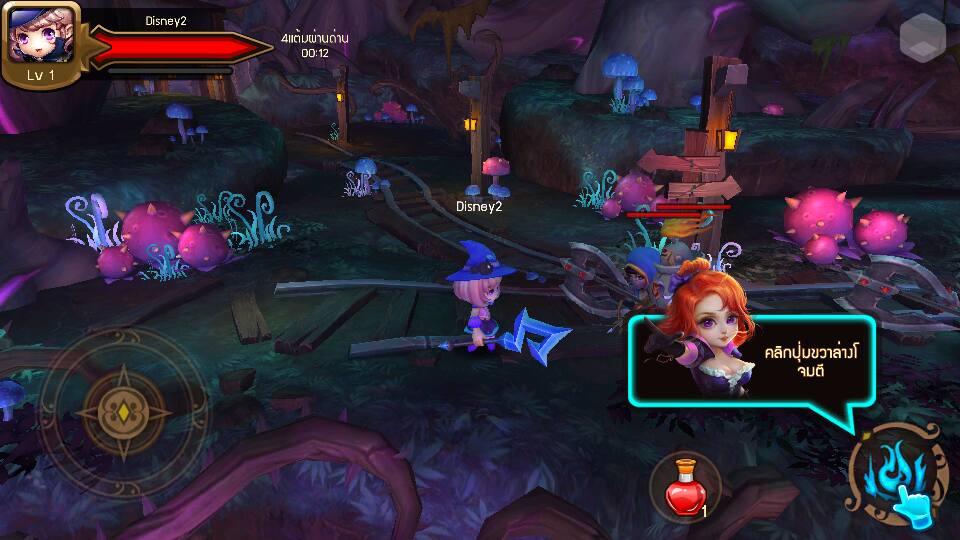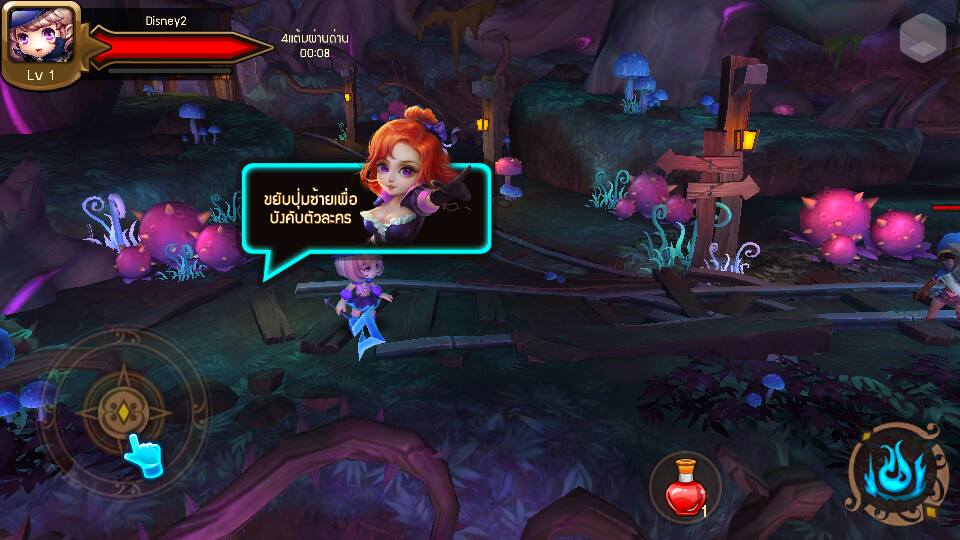 วิธีการคอนโทรลเกม เราจะใช้มือซ้ายในการควบคุมทิศทางการเคลื่อนย้ายตัวละคร ซ้ายขวาหน้าหลัง คล้ายๆ จอยสติ๊ก