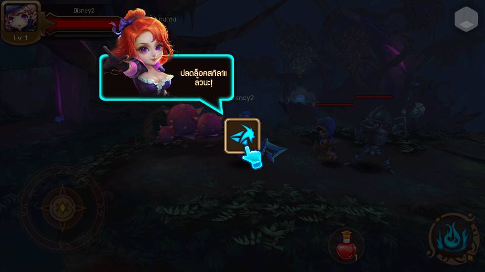 คำสั่งสกิล สกิลจะอยู่ใกล้ๆ กับคำสั่งโจมตี โดยจะปลดล็อคสกิลเรื่อยๆ ตามลำดับเลเวล ซึ่งแน่นอนว่าการใช้สกิลจะต้องรอดีเลย์เสมอ