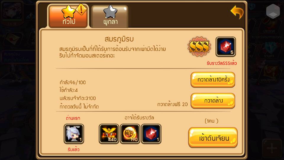 แน่นอนเกมเก็บเลเวล จะต้องมีดันเจี้ยนให้ผจญภัย สามารถเล่นผ่านด่านไปได้เรื่อยๆ หรือจะเล่นตามเควสเนื้อเรื่องก็ได้ โดยเราจะต้องใช้ “ค่ากำลัง” ในการเข้าดันเจี้ยนแต่ละครั้ง อีกทั้งยังมีรางวัลสูงสุดหากทำได้ตามเงื่อนไขที่ด่านนั้นกำหนดอีกด้วย หากเพื่อนๆ ผ่านดันนี้ไปแล้ว สามารถกลับมากวาดล้างเก็บ exp ได้โดยไม่ต้องเข้าดันอีกด้วย
