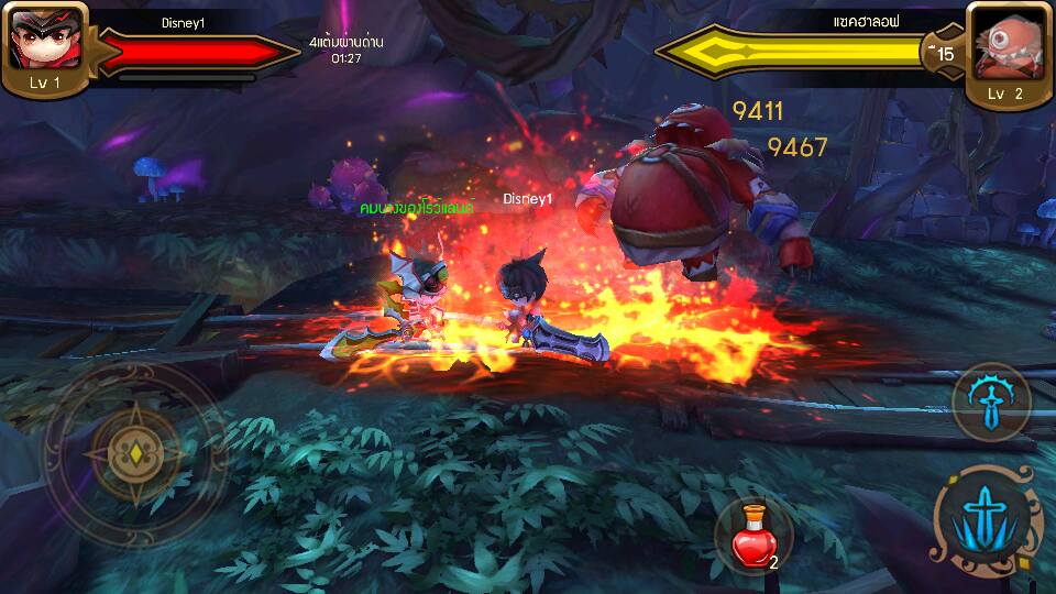 คำสั่งโจมตี เราจะใช้มือขวาในการกดโจมตีธรรมดา สามารถโจมตีได้ทั้งด้านซ้ายและด้านขวา