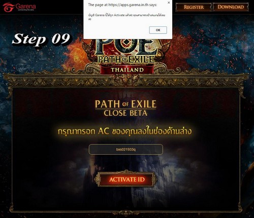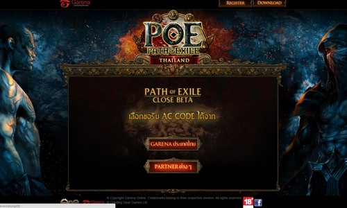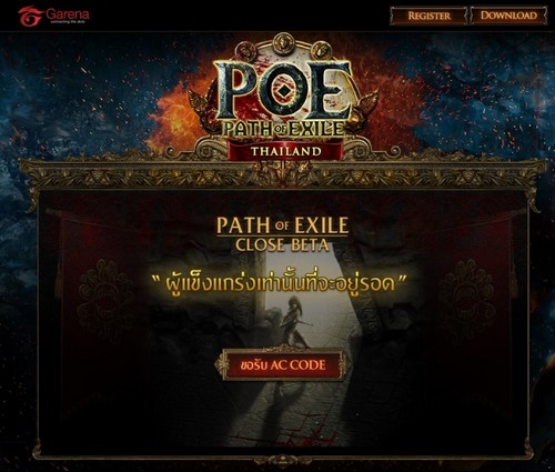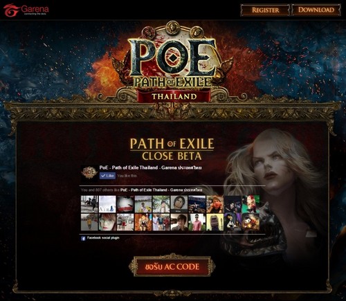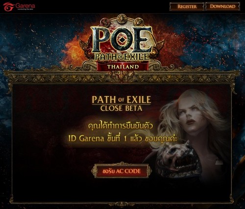 1. ไปที่ http://apps.garena.in.th/poe/cbt_registration แล้วกดปุ่มสีแดง ขอรับ “AC Code”