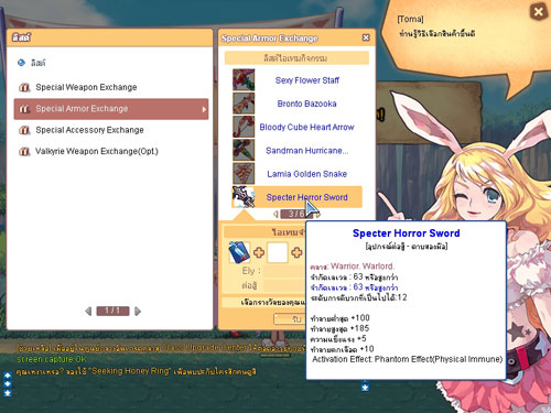 เมื่อ เข้าไปแล้วจะเห็นหน้าต่างเป็นช่องๆ ให้กดเลือกตามความต้องการว่าสนใจกดปุ่มไหน ก็คลิกเลือกแล้วกดปุ่มซื้อด้านล่างของหน้าจอ ระบบจะสุ่มไอเทมที่คุณจะได้รับ โดยไอเทมที่จะได้รับมีกว่า 10 ชนิด ซึ่งของรางวัลจะมีการเปลี่ยนแปลงทุกๆ 30 นาที อย่าลืมนะครับ ทุกๆ 30 นาที