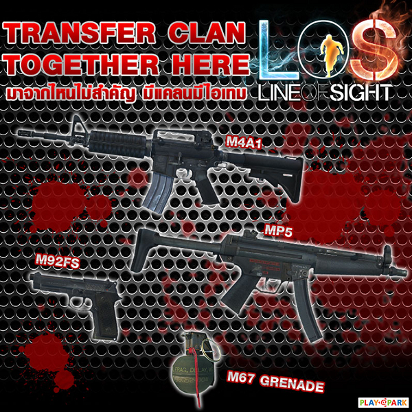 Line of Sight จาก Playpark ขอชวนเหล่าพลทหารจากเกมอื่นๆ มาร่วมสนุกกับกิจกรรม Transfer Clan Together Here ตั้งแต่ 11 – 23 พ.ย. นี้ เพียงถ่าย Screenshot ภาพแคลนของตนเอง ในเกมอื่นๆ ในประเทศไทย ส่งมาใน Inbox แฟนเพจ LOS Online รับเซ็ตอาวุธสงครามจาก Line of Sight ไปเลย