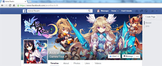 มาต่อกันที่ Fanpage ที่เปิดให้เพื่อนๆ ได้เข้าไปกดไลค์เพื่อติดตามข่าวสารของเกม Realm Online หรือพูดคุยกับ Admin Fanpage แบบใกล้ชิดได้ที่นี่ https://www.facebook.com/aronline.in.th หรือจะพิมพ์ในช่องค้นหาของ Facebook ว่า Astral Realm ก็ได้เหมือนกันนะคะ และนี่คือหน้าตาของ Official Fanpage ของเกมนี้ค่ะ