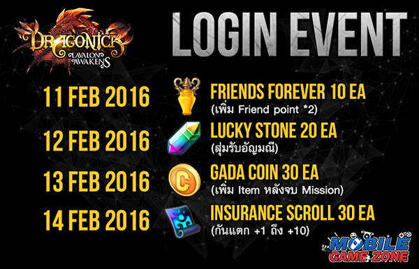 เพื่อเป็นการเฉลิมฉลองการกลับมาทางทีมงาน Dragonica : Lavalon Awakens เขาก็เตรียมจัดของมาแจกกันแบบจัดเต็ม ทั้ง กิจกรรมในเกมส์ กิจกรรมบน หน้าแฟนเพจ Facebook หรือแม้แต่กิจกรรมในงาน Thailand Mobile Expo 2016 ที่มีขึ้นระหว่างวันที่ 11-14 กุมภาพันธ์นี้ ณ ศูนย์การประชุมแห่งชาติสิริกิติ์ ใครอยากได้ของดีแบบฟรีๆ ห้ามพลาดเด็ดขาด