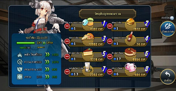 เกมนี้ระบบอัพเกรดจะใช้ สิ่งที่เรียกว่า ไอเทมเพิ่ม EXP ในการอัพเกรด ซึ่งจะมีหลายแบบ หลายชิ้น โดยแต่ละแบบจะได้ EXP ที่แตกต่างกันออกไป อย่างเช่น ปลาทอด(เล็ก) จะได้ EXP 88,028,ขาหมู(ใหญ่) จะได้ EXP 164,075 ยิ่งให้ EXP มากเท่าไหร่ ก็จะยิ่งใช้เงินในการอัพเกรดมากขึ้นเท่านั้น ระวังอย่าอัพเกรดเพลินจนลืมดูเงินติดตัวละ