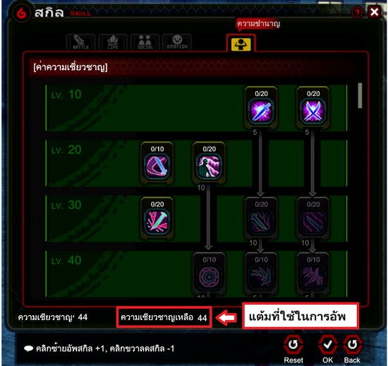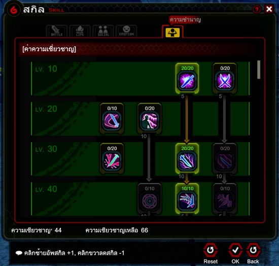 ตัวอย่างการอัพสกิลความเชี่ยวชาญ อาชีพ Samurai สายคาตานะ