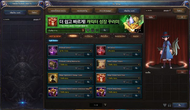 ได้มีการเปิดระบบ Cash Shop ให้ผู้เล่นได้ทำการซื้อของเพื่อทำให้การเล่นเกมนั้นสนุก และมันส์ยิ่งขึ้น สำหรับแต้มที่จะใช้ในการซื้อของใน Cash Shop นั้นจะใช้เป็น EL Coin โดยมูลค่าเงิน 1 บาท = 10 EL Coin