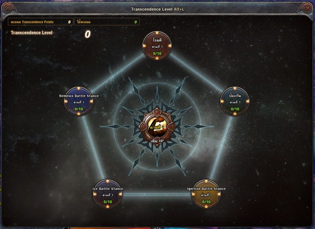 ระบบเพิ่มความสามารถให้กับตัวละครของผู้เล่น เมื่อมีตัวละครใดก็ตามใน ID นั้นเก็บ Level ถึง Max Level 40 ก็จะสามารถเริ่มเก็บ Trancendence Level กันได้เลย ซึ่ง Trancendence แต่ละ Level และแต่ละ Class จะได้รับคุณสมบัติต่างๆ แตกต่างกันไป